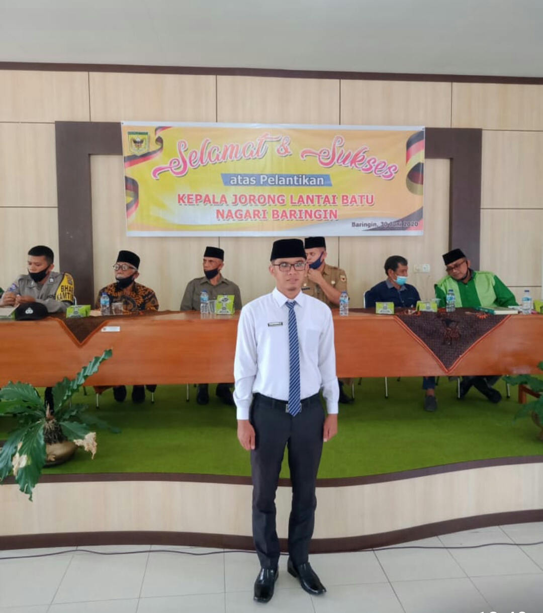 Tanah Datar, jurnalminang.com. Aang Suhendra resmi menjabat sebagai kepala jorong Lantai Batu Nagari Baringin kec. Limakaum setelah dilantik oleh Wali Nagari Baringin Muhammad Idrus, Senin 29 Juni 2020 di aula kantor wali nagari Baringin. Pelantikan tersebut dihadiri oleh Camat Limakaum, Babinsa, Ketua BPRN Baringin, KAN Baringin, Bundo Kanduang, Ninik mamak serta tokoh masyarakat lainnya. Acara pelantikan berjalan sukses dan lancar dari awal sampai akhir.