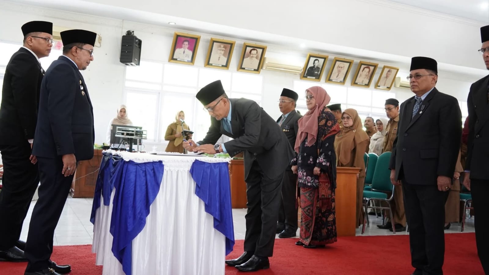 Dikatakan Bupati, proses penunjukkan Jabatan Sekretaris Daerah telah merujuk sesuai Undang-Undang Nomor 23 Tahun 2023 tentang ASN antara lain bahwa untuk Pengisian Jabatan Pratama termasuk Sekda yang dilakukan terbuka.