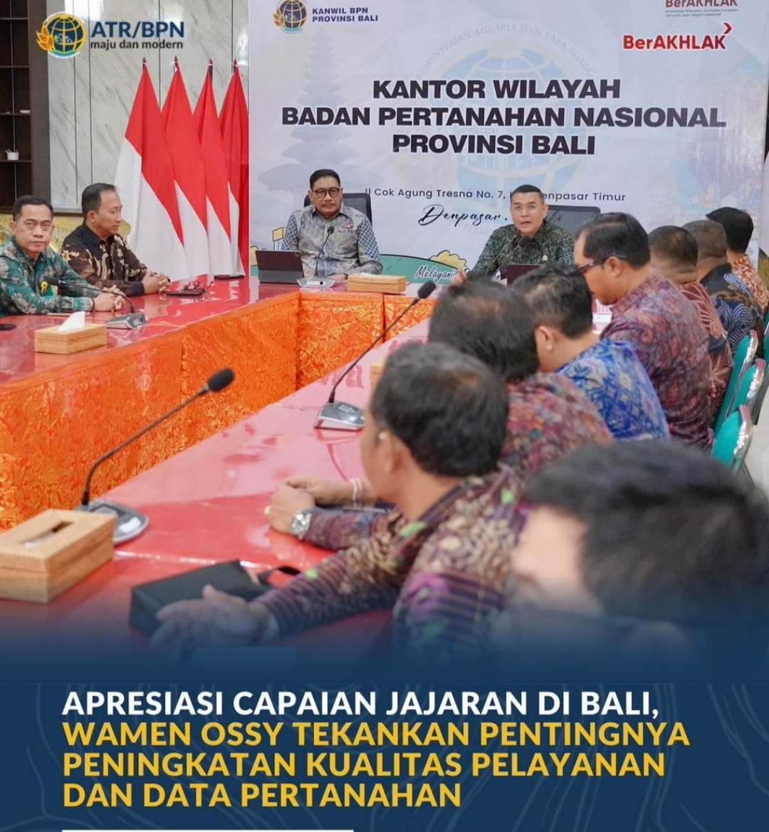 Dengan data pertanahan yang semakin baik, Wamen Ossy berharap pelayanan pertanahan di Provinsi Bali menjadi lebih cepat dan transparan dalam memberikan kepastian hukum bagi masyarakat.