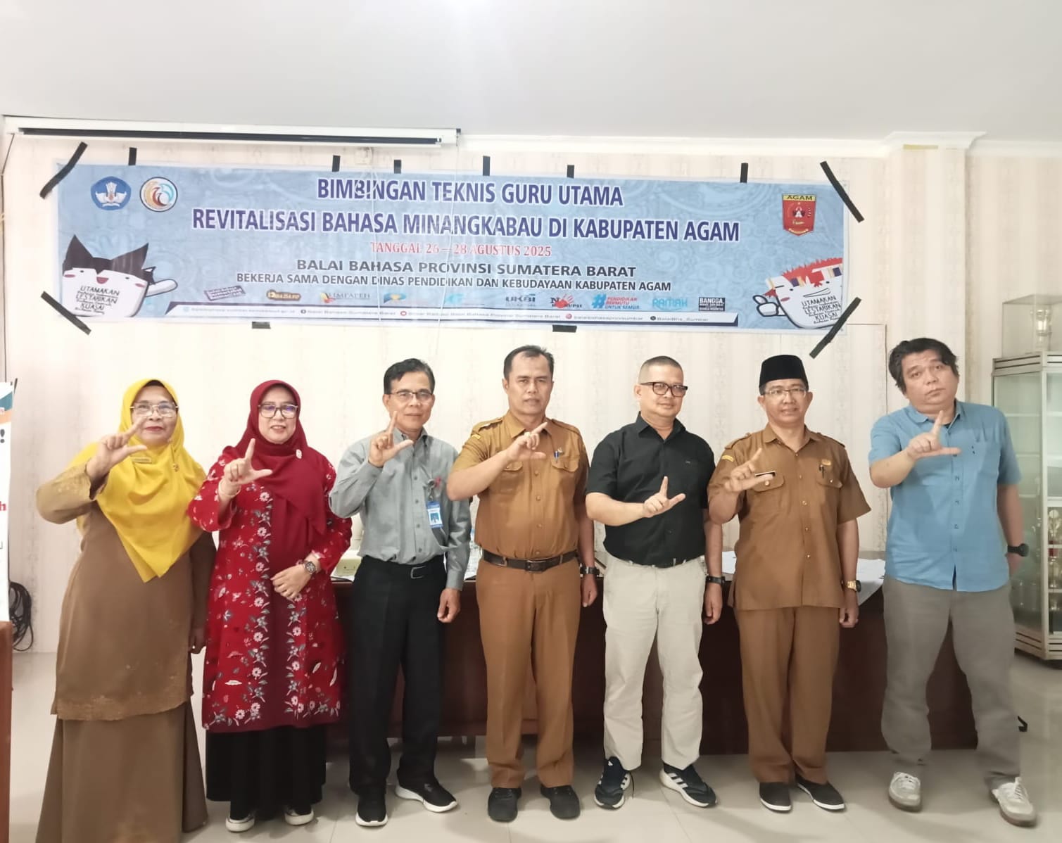 Lubuk Basung. Jurnal Minang. Kegiatan Bimbingan Teknis Guru Utama Revitalisasi Bahasa Daerah di Kabupaten Agam merupakan kabupaten/kota yang ke 18 dalam pelaksanaan bimbingan teknis tahun 2025 di Sumatera Barat. Bimbingan teknis tersebut dilaksanakan selama 4 bulan oleh Balai Bahasa Provinsi Sumatera Barat.