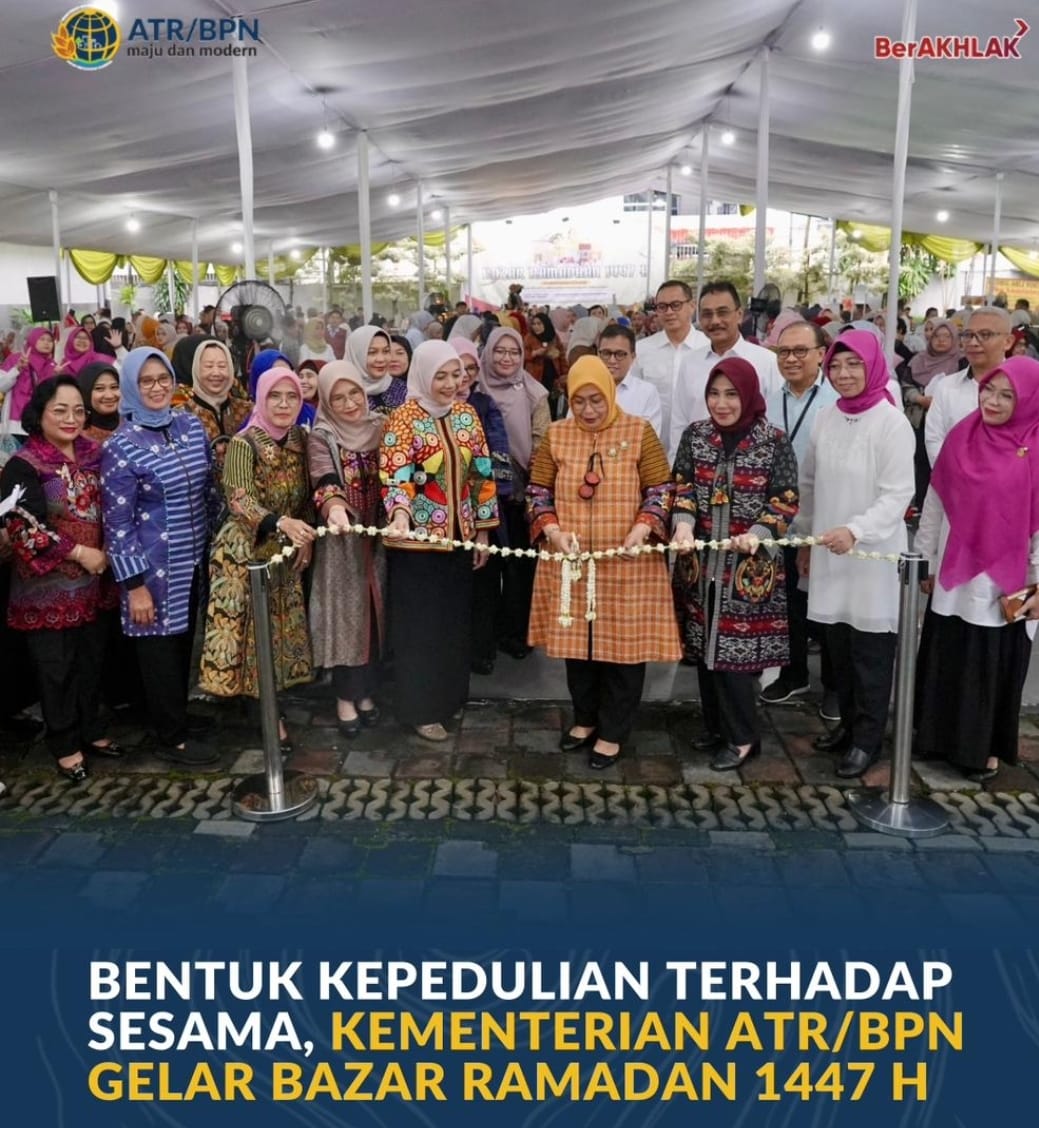 Jakarta, Jurnal Minang. Kementerian Agraria dan Tata Ruang/Badan Pertanahan Nasional (ATR/BPN) menyelenggarakan Bazar Ramadan 1447 H, di lapangan Kementerian ATR/BPN, Jakarta pada Kamis (05/03/2026). Membawa tema “Bazar Ramadan Mewujudkan Kepedulian dan Kebersamaan”, kegiatan ini diisi oleh 70 tenant yang berasal dari dari Usaha Mikro, Kecil dan Menengah (UMKM) eksternal maupun UMKM Binaan Ikatan Istri Karyawan dan Karyawati (Ikawati) ATR/BPN Pusat, Banten, dan DKI Jakarta.