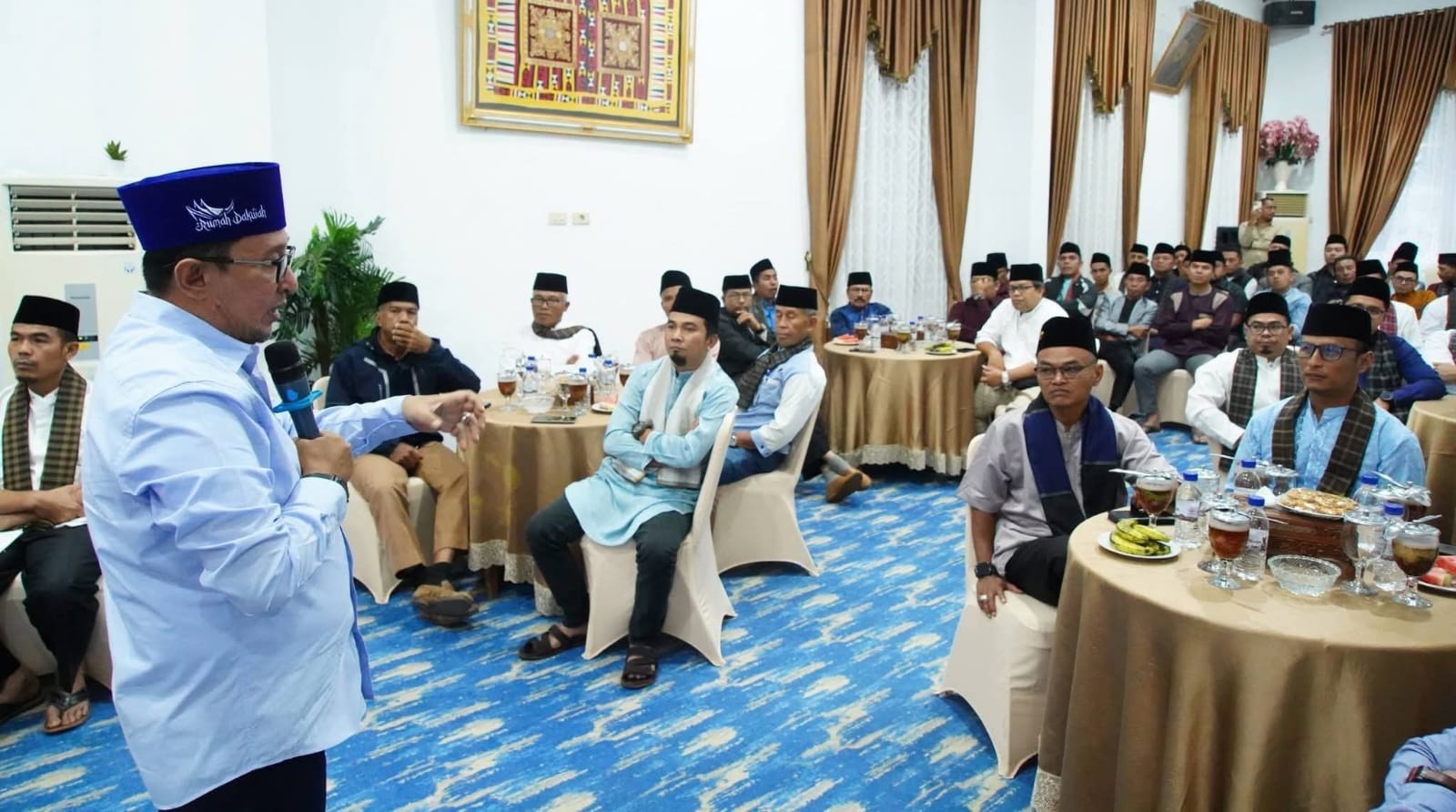 Batusangkar, Jurnal Minang. Bupati Tanah Datar Eka Putra bersama Wakil Bupati Ahmad Fadly bersilaturahmi sekaligus berbuka puasa bersama dengan Forum Komunikasi Wali Nagari (FKWN) di Gedung Indojolito Batusangkar, Senin (9/3/2026).
