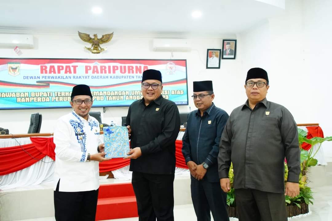 Ketua Rony Mulyadi menyampaikan, rapat paripurna yang dilaksanakan merupakan lanjutan sidang DPRD dua hari sebelumnya yang beragendakan mendengarkan pemandangan fraksi – fraksi DPRD terhadap Ranperda Perubahan yang disampaikan sebelumnya.