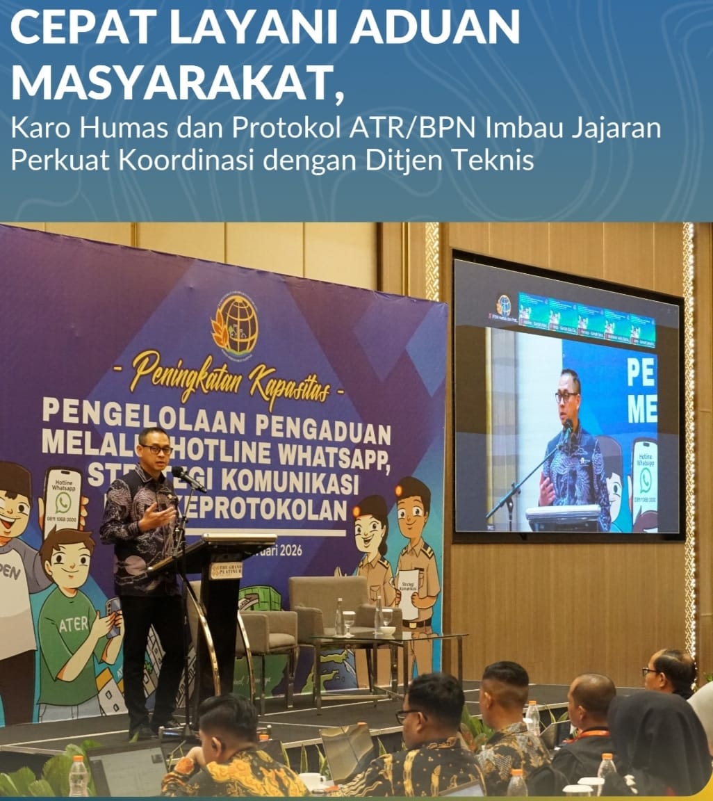 Pengelolaan pengaduan pada Hotline inilah yang menjadi fokus pembahasan dalam pelatihan yang berlangsung mulai 11-13 Februari 2026 ini. Pelatihan ini diselenggarakan melalui kolaborasi Biro Humas dan Protokol Kementerian ATR/BPN bersama PT Telekomunikasi Indonesia, Tbk. selaku mitra dalam layanan OCA.