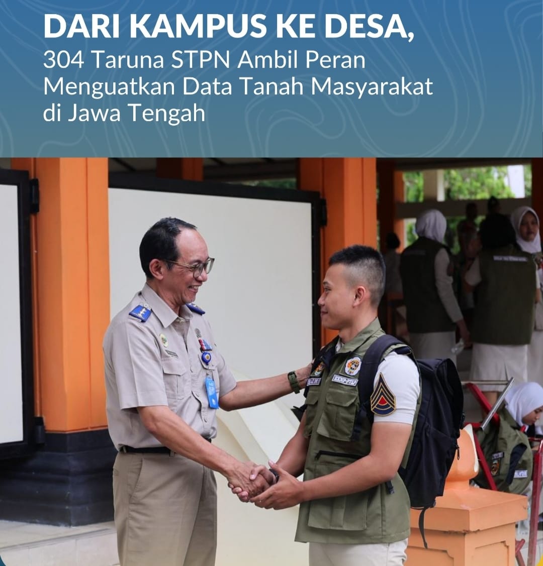 DIY, Jurnal Minang. Sebanyak 304 Taruna/i Sekolah Tinggi Pertanahan Nasional (STPN) ditempatkan di enam kabupaten di Jawa Tengah guna mendukung pemutakhiran data digital sertipikat lama yang sedang dilaksanakan Kementerian Agraria dan Tata Ruang/Badan Pertanahan Nasional (ATR/BPN). Penugasan tersebut merupakan bagian dari pelaksanaan Kuliah Kerja Nyata Pertanahan dan Praktik Tata Laksana Pertanahan (KKNP–PTLP) Tahun Akademik 2025–2026 yang berlangsung pada 9 Februari s.d 11 Juli 2026.