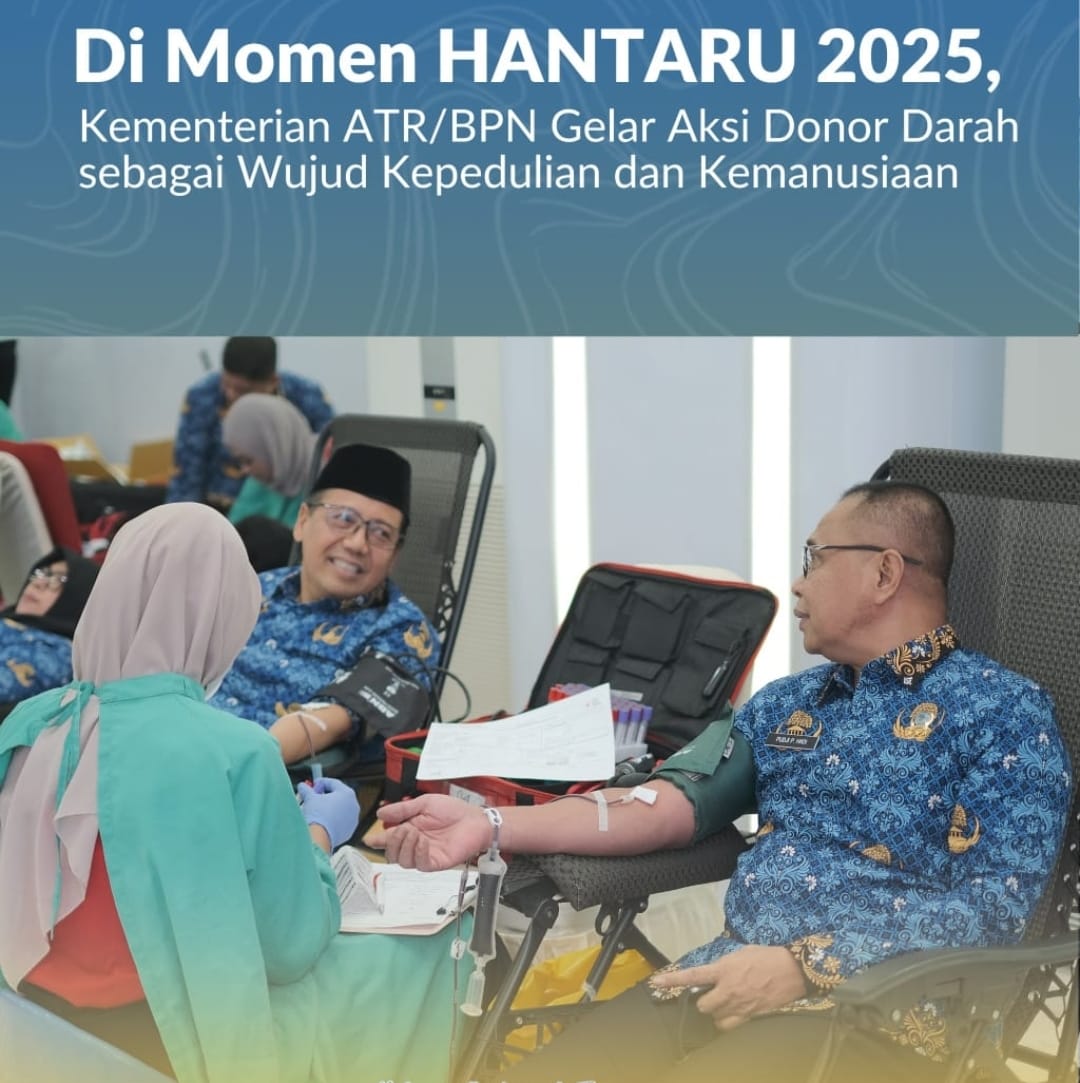 Jakarta, Jurnal Minang. Dalam memperingati Hari Agraria dan Tata Ruang (HANTARU) Tahun 2025, Kementerian Agraria dan Tata Ruang/Badan Pertanahan Nasional (ATR/BPN) menyelenggarakan kegiatan donor darah di Aula Prona, Kantor Kementerian ATR/BPN, Jakarta, Rabu (01/10/2025). Sekretaris Jenderal (Sekjen) Kementerian ATR/BPN, Pudji Prasetijanto Hadi, menyebut donor darah ini cerminan dari semangat HANTARU yang tidak hanya berorientasi pada tata ruang dan agraria, tetapi juga menjunjung tinggi nilai-nilai kemanusiaan.