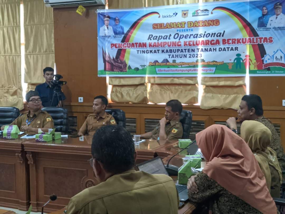Tanah Datar, Jurnal Minang. Dinas PMDPPKB Kabupaten Tanah Datar bersama dengan BKKBN Sumatera Barat gelar Rapat Operasional Penguatan Kampung Keluarga Berkualitas Tingkat Kabupaten Tanah Datar di Aula Eksekutif Kantor Bupati setempat pada Selasa (24/10/2023).
