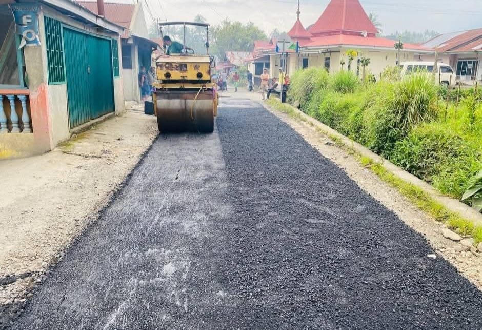 Proses pengerjaan dilakukan oleh tim pemeliharaan jalan dengan menggunakan alat berat tandem roller untuk memastikan hasil pemadatan maksimal sehingga kualitas permukaan jalan lebih baik dan tahan terhadap beban lalu lintas.