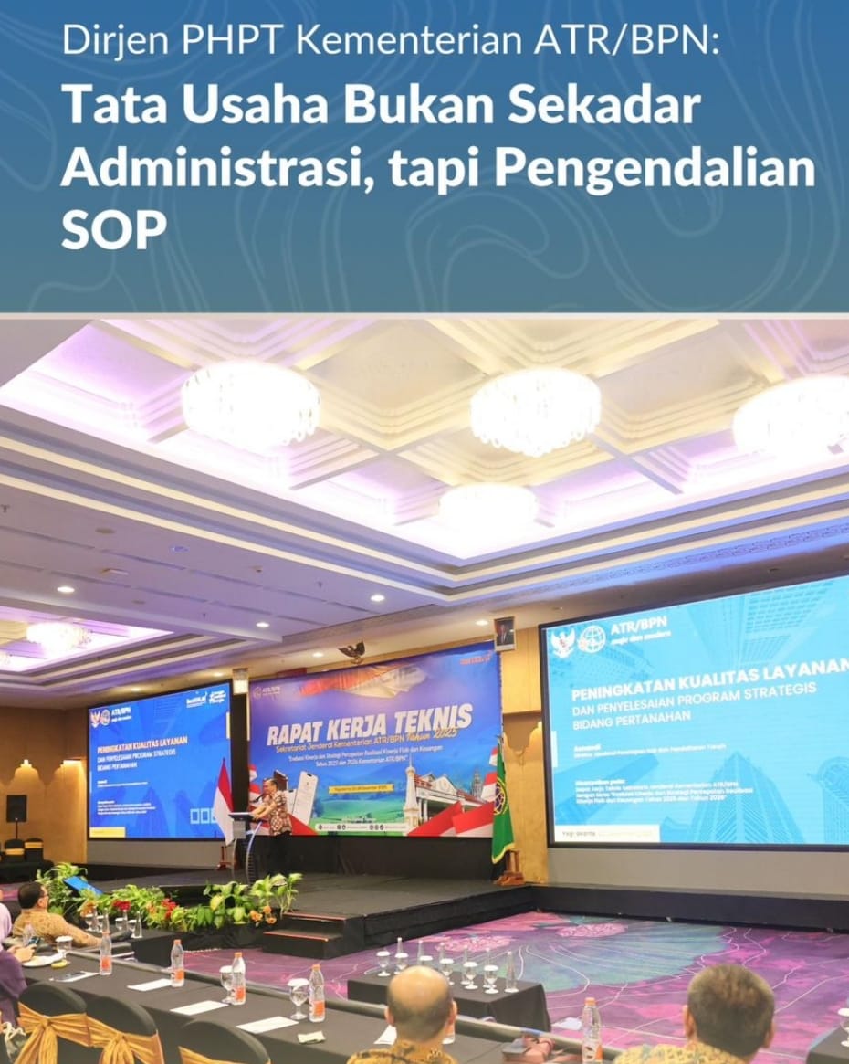 Yogyakarta, Jurnal Minang. Direktur Jenderal Penetapan Hak dan Pendaftaran Tanah (PHPT) Kementerian Agraria dan Tata Ruang/Badan Pertanahan Nasional (ATR/BPN), Asnaedi, menyoroti fungsi tata usaha dalam menjaga konsistensi pelaksanaan standar operasional prosedur (SOP) layanan pertanahan. Peran itu ia katakan sebagai bagian dari upaya Kementerian ATR/BPN memperkuat pengendalian internal dan mendorong perbaikan tata kelola pelayanan.