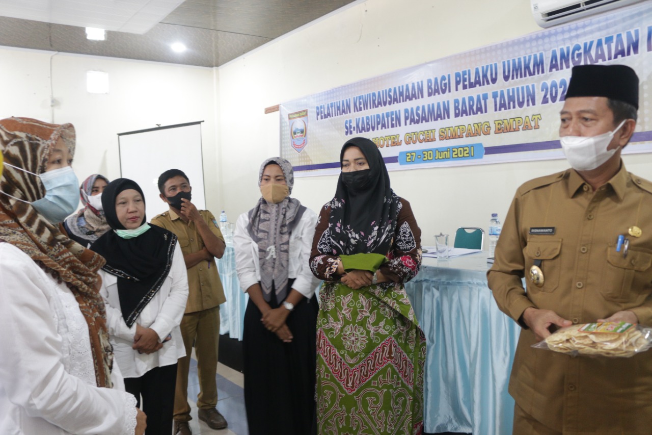 Hal ini disampaikan Wakil Bupati Pasaman Barat Risnawanto dalam kegiatan pembukaan Pelatihan Kewirausahaan Bagi Pelaku UMKM angkatan II yang digelar oleh Pemerintah Daerah Kabupaten Pasaman Barat melalui Dinas Koperasi dan UMKM Senin (28/6/2021) di Hotel Guchi Pasbar.