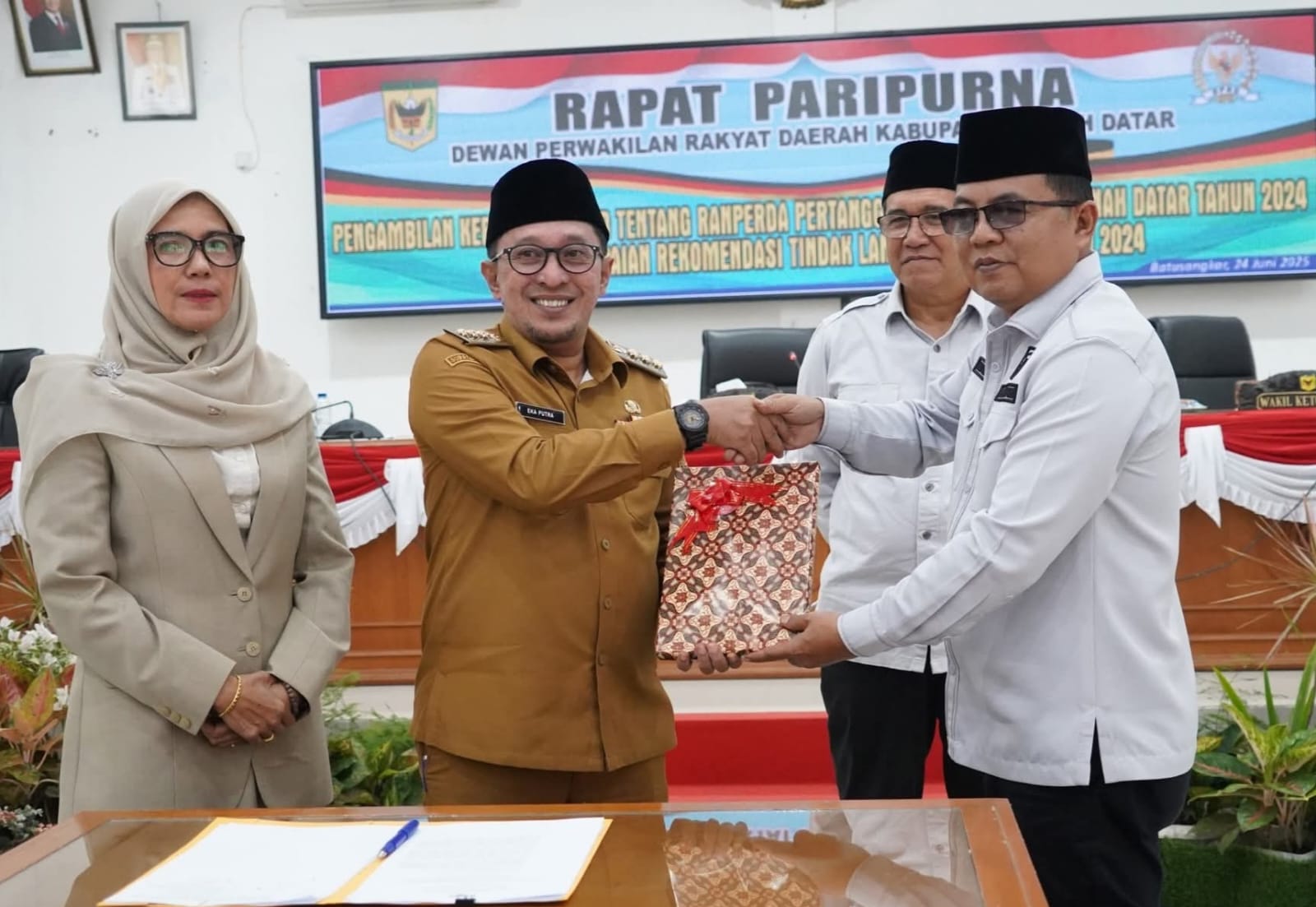 Sementara itu, Bupati Eka Putra dalam sambutannya menyampaikan, setelah disetujui Perda Pertanggungjawaban Pelaksanaan APBD tahun 2024 menjadi dasar penyusunan KU PPAS Perubahan APBD Tahun Anggaran 2025 dan selanjutnya akan menjadi pedoman penyusunan APBD Tahun Anggaran 2025.