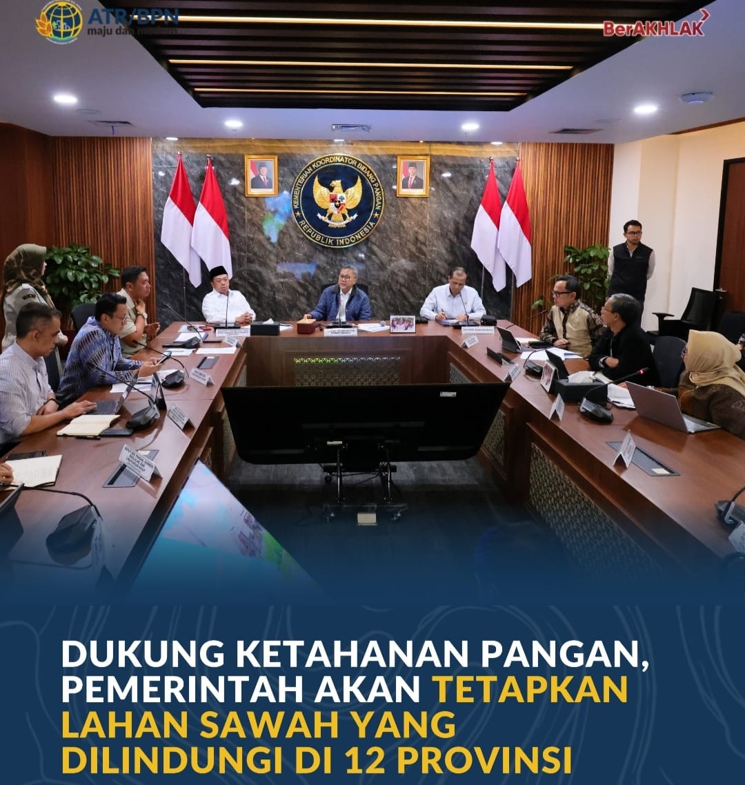 Jakarta, Jurnal Minang. Pemerintah akan menetapkan Lahan Sawah yang Dilindungi (LSD) di 12 provinsi di Indonesia. Penetapan LSD ini mengubah kebijakan perubahan alih fungsi lahan sawah yang dulunya dipegang pemerintah daerah (Pemda) menjadi kewenangan pusat, dalam hal ini Kementerian Agraria dan Tata/Badan Pertanahan Nasional. Rencana tersebut disampaikan Menteri Nusron dalam Rapat Koordinasi (Rakor) lanjutan Tim Terpadu Pengendalian Alih Fungsi Lahan Sawah, di Kantor Kementerian Koordinator (Kemenko) Bidang Pangan, Jakarta, Kamis (12/03/2026).