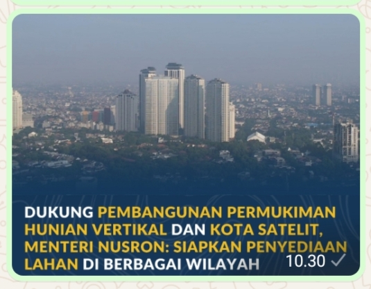 Jakarta, Jurnal Minang. Kementerian Agraria dan Tata Ruang/Badan Pertanahan Nasional (ATR/BPN) memperkuat dukungan terhadap Program Strategis Nasional (PSN) melalui Pembangunan Permukiman Hunian Vertikal dan Kota Satelit. Menteri ATR/Kepala BPN, Nusron Wahid, mengatakan bahwa dukungan diberikan dengan penyediaan lahan skala besar di berbagai wilayah Indonesia.