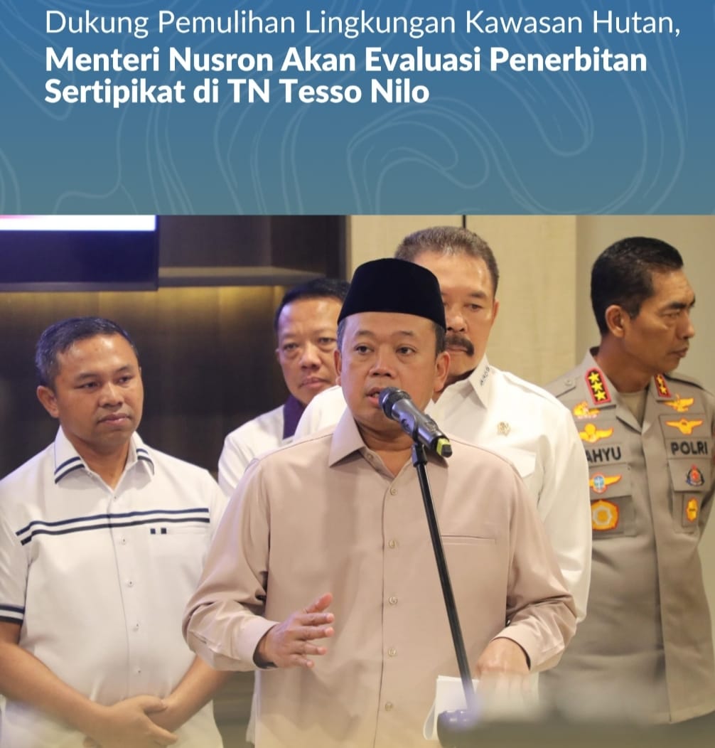Jakarta, Jurnal Minang. Satuan Tugas Penertiban Kawasan Hutan (Satgas PKH) tengah melakukan reforestasi atau pemulihan kembali kawasan hutan Taman Nasional (TN) Tesso Nilo di Riau, pasca mengalami penurunan fungsi akibat perambahan hutan secara ilegal. Dalam upaya pemulihan kembali, Kementerian Agraria dan Tata Ruang/Badan Pertanahan Nasional (ATR/BPN) akan mengevaluasi Sertipikat Hak Milik (SHM) yang terindikasi berada dalam kawasan taman nasional tersebut.