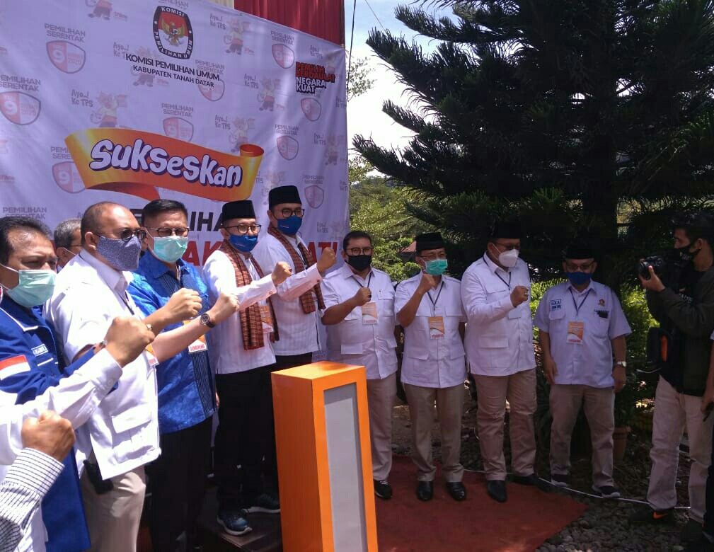 Tanah Datar, JurnalMinang.Com. Pasangan calon bupati dan wakil bupati Tanah Datar Eka Putra dan Richi Aprian sudah mendaftar ke kantor KPU Tanah Datar pagi ini Sabtu, 5 Desember 2020 sekitar pukul 10.30 wib. Rombongan Paslon ini diiringi oleh beberapa petinggi partai serta tim pendukung. Rombongan ini diterima langsung oleh Ketua KPU Tanah Datar Fachrul Rozi, S.PdI beserta pegawai KPU lainnya.