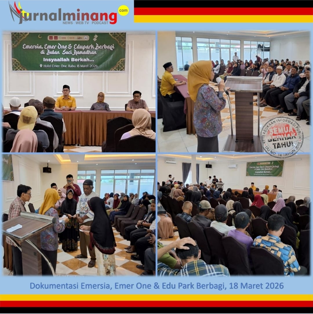 Batusangkar, Jurnal Minang. Dalam rangka mensyukuri Ramadhan dan datangnya Hari Raya Idul Fitri 1447 H, manajemen Emersia Group mengadakan acara bertajuk Emersia, Emer One & Edu Park Berbagi yang dilaksanakan di aula Emer One Hotel pada Rabu sore, 18 Maret 2026.