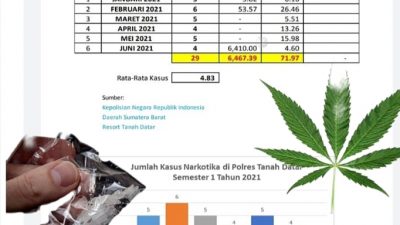 Dari data yang diperoleh dari Polres Tanah Datar pada bulan Januari 2021 hingga Juni 2021 ditangani kasus narkoba sebanyak 29 kasus dengan rata-rata 4.83 kasus per bulannya.