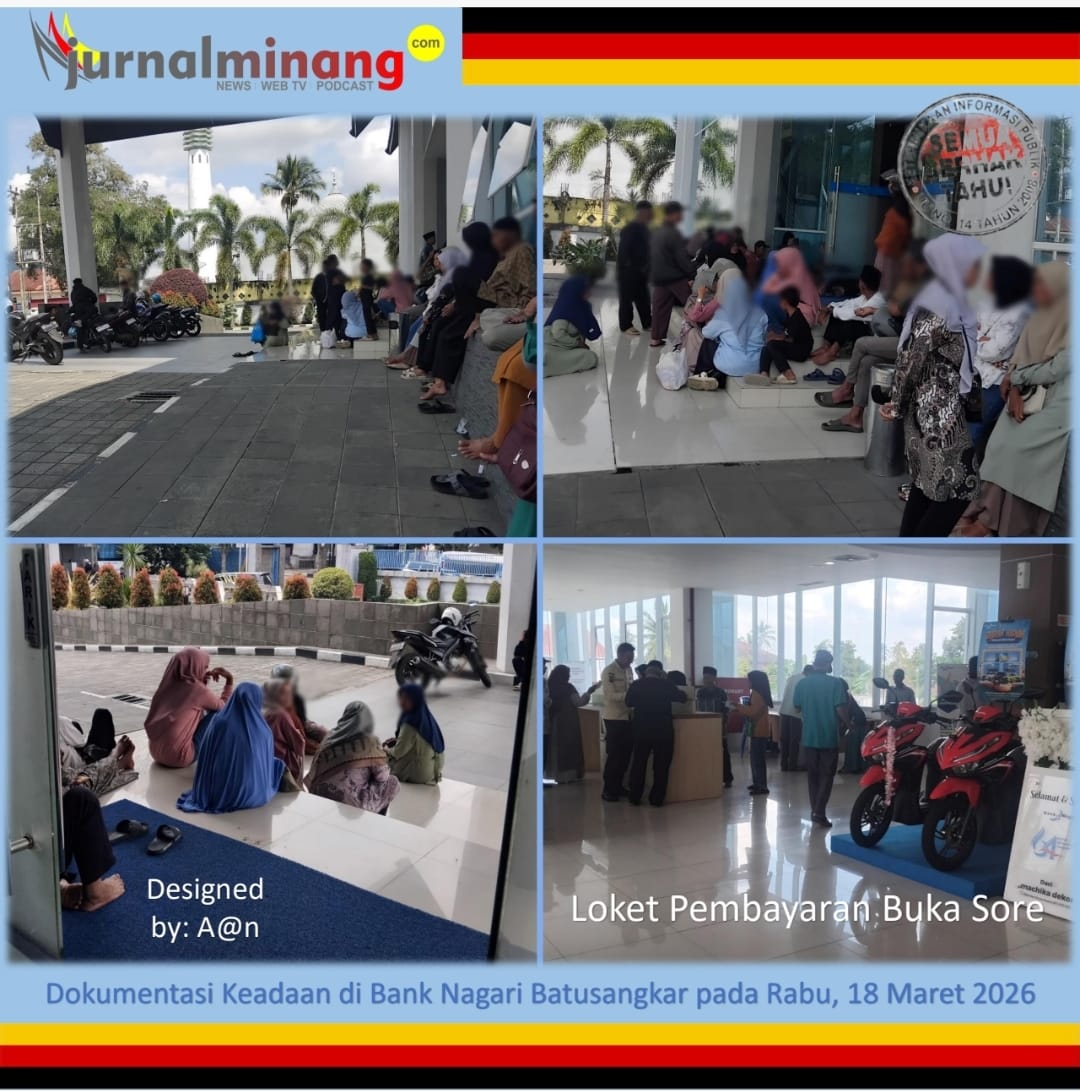 Batusangkar, Jurnal Minang. Kejadian cukup memilukan terjadi di lobby dan pelataran parkir Bank Nagari Batusangkar di Parak Juar manakala puluhan guru TPA dan penjaga masjid belum kunjung dapat kepastian untuk mengambil honor yang seharusnya mereka terima sekali setahun itu pada Rabu pagi hingga sore, 18 Maret 2026.