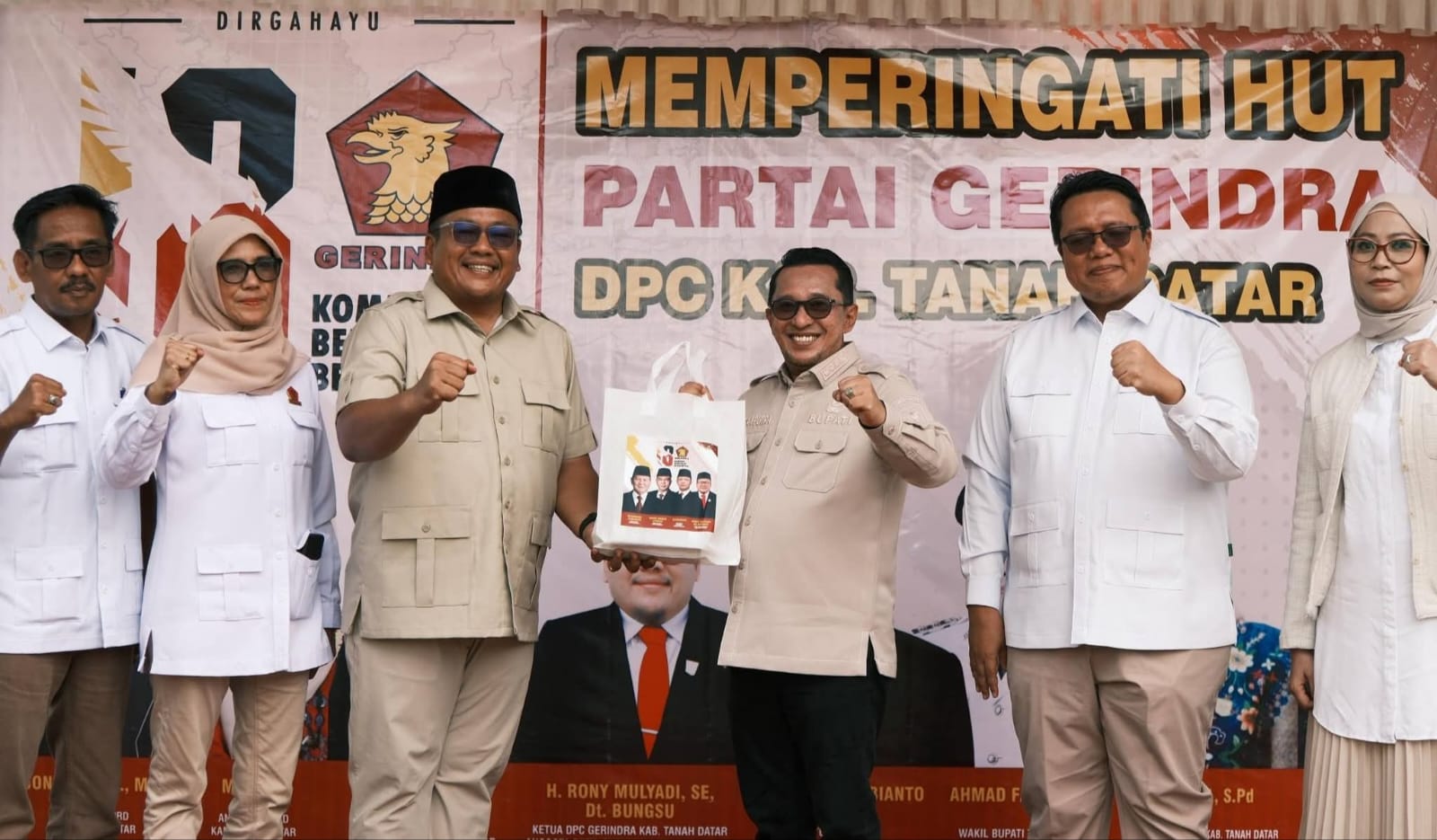 Sebelumnya Ketua DPC Partai Gerindra Tanah Datar H. Rony Mulyadi, S.E., D.T. Bungsu sampaikan sekilas berdirinya Partai Gerindra yaitu pada 6 Februari 2008 lalu oleh tokoh-tokoh nasional termasuk Prabowo Subianto, dan berakar kuat pada semangat nasionalisme, keadilan sosial, dan pembelaan terhadap rakyat kecil.