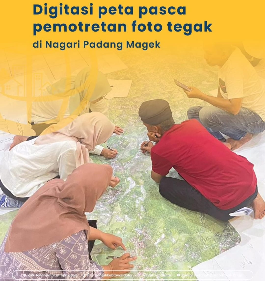 Tanah Datar, Jurnal Minang. Kantor Pertanahan Kabupaten Tanah Datar melalui Satuan Tugas Fisik bersama Masyarakat Pengumpul Data Fisik (Masdasik) Nagari Padang Magek melaksanakan kegiatan digitasi peta terhadap hasil pemotretan foto tegak di wilayah Nagari Padang Magek.