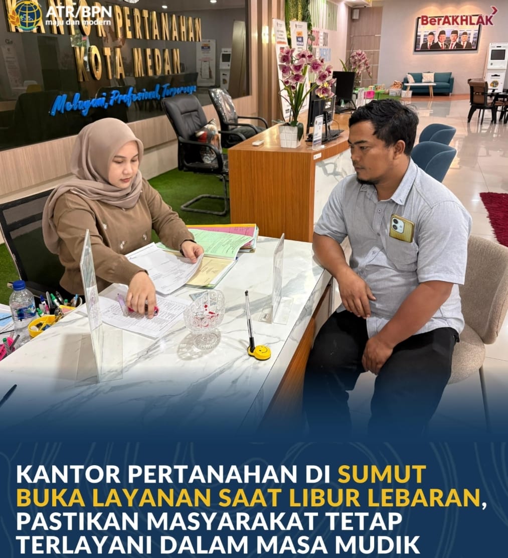 “Momentum Lebaran menjadi waktu yang tepat bagi masyarakat untuk mengurus atau mengecek aset tanah keluarga yang selama ini mungkin tertunda. Oleh karena itu, kami tetap membuka layanan terbatas untuk memfasilitasi kebutuhan tersebut,” terang Kepala Kanwil BPN Provinsi Sumatera Utara, Sri Pranoto, dalam keterangannya, Rabu (18/03/2026).