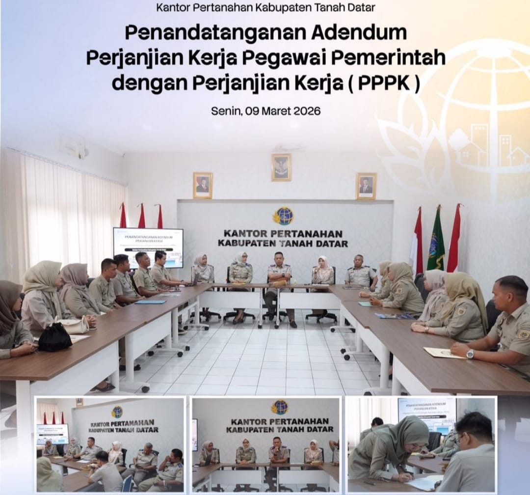 Batusangkar, Jurnal Minang. Kantor Pertanahan Kabupaten Tanah Datar, Senin, 9 Maret 2026 melaksanakan kegiatan penandatanganan adendum kontrak kerja Pegawai Pemerintah dengan Perjanjian Kerja (PPPK) yang bertempat di Aula Kantor Pertanahan Kabupaten Tanah Datar.