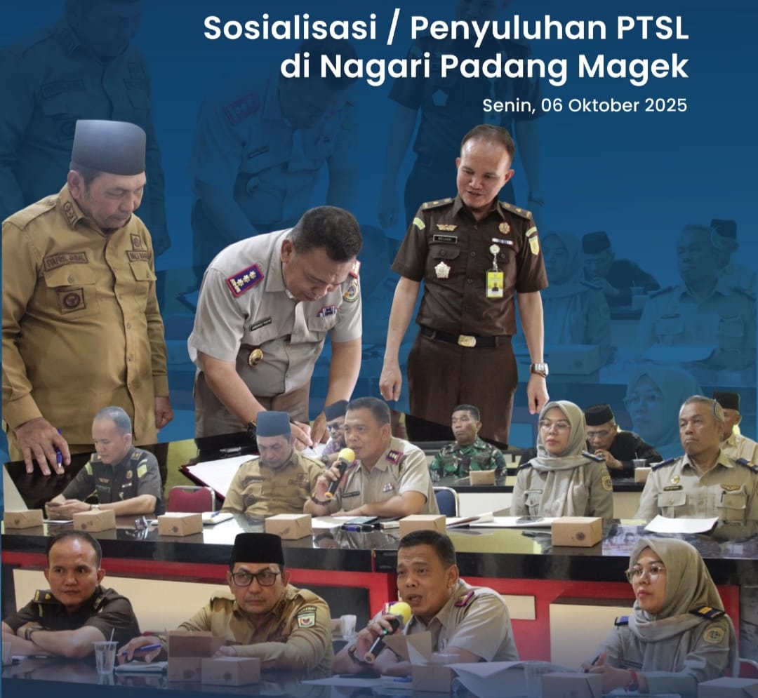 Batusangkar, Jurnal Minang. Kantor Pertanahan Kabupaten Tanah Datar, Senin 6 Oktober 2025 menyelenggarakan Penyuluhan/Sosialisasi kegiatan Pendaftaran Tanah Sistematis Lengkap (PTSL) di Nagari Padang Magek, Kecamatan Rambatan. Kegiatan berlangsung di Aula Nagari Padang Magek dengan dihadiri oleh masyarakat, ninik mamak, pemerintah nagari, Babinsa, serta perwakilan Kejaksaan Negeri Tanah Datar yang turut hadir sebagai narasumber.