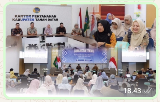 Dalam kegiatan Bimtek Kantor Pertanahan Kabupaten Tanah Datar diwakili oleh Kepala Subbagian Tata Usaha, Meylan Lestari, bersama tim. Sementara itu, seluruh Pejabat Pengawas juga mengikuti kegiatan secara daring dari kantor.