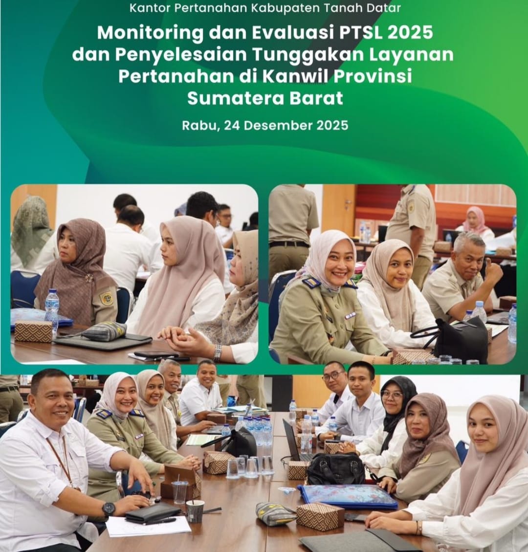 Padang, Jurnal Minang. Kantor Pertanahan Kabupaten Tanah Datar Rabu 24/12-2025 mengikuti kegiatan Monitoring dan Evaluasi (Monev) Program Pendaftaran Tanah Sistematis Lengkap (PTSL) Tahun 2025 serta penyelesaian tunggakan layanan pertanahan yang diselenggarakan oleh Kantor Wilayah Badan Pertanahan Nasional (BPN) Provinsi Sumatera Barat.