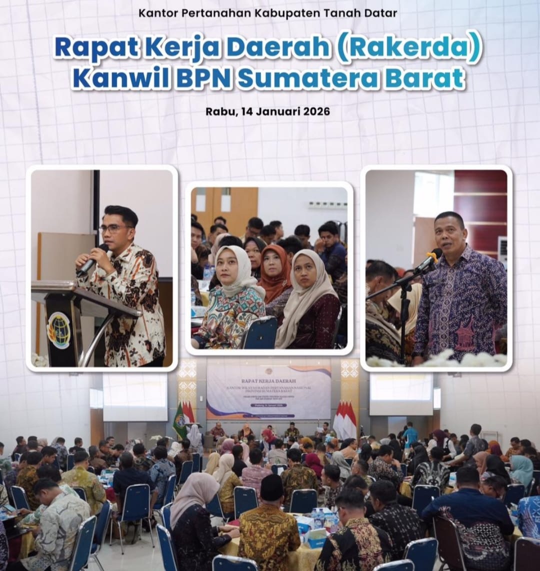 Padang, Jurnal Minang. Kantor Pertanahan Kabupaten Tanah Datar turut mengikuti kegiatan Rapat Kerja Daerah (Rakerda) Tahun 2026 yang diselenggarakan oleh Kantor Wilayah BPN Provinsi Sumatera Barat di Padang.