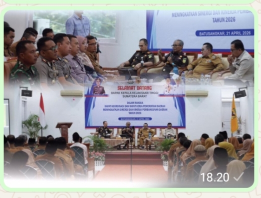 Rapat tersebut dihadiri oleh Kepala Kejaksaan Tinggi Sumatera Barat serta Bupati Kabupaten Tanah Datar, Eka Putra bersama unsur Forkopimda dan seluruh perangkat daerah. Kegiatan ini menjadi momentum strategis dalam memperkuat koordinasi lintas sektor guna mendukung percepatan pembangunan daerah yang berkelanjutan dan berintegritas.