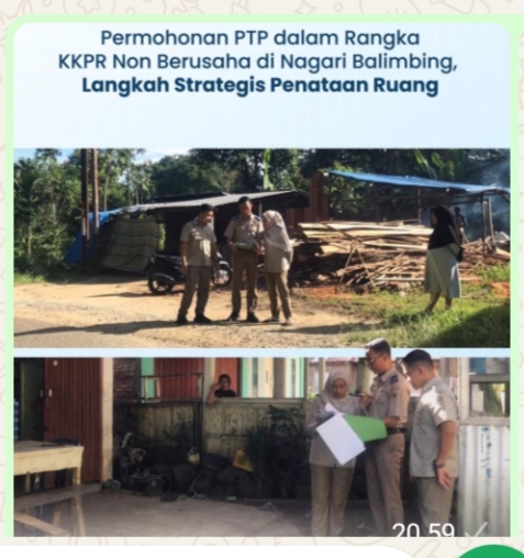 Pagaruyung, Jurnal Minang. Kantor Pertanahan Kabupaten Tanah Datar terus berkomitmen dalam memberikan pelayanan terbaik kepada masyarakat, salah satunya melalui proses permohonan Pertimbangan Teknis Pertanahan (PTP) dalam rangka Kesesuaian Kegiatan Pemanfaatan Ruang (KKPR) untuk kegiatan non berusaha atas nama Hasni Wartati yang berlokasi di Nagari Balimbing, Kecamatan Rambatan.