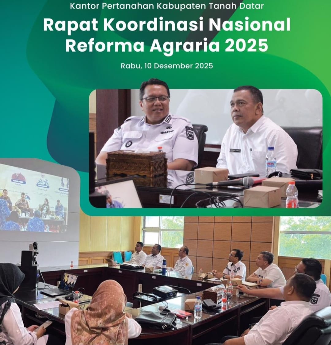 Tanah Datar, Jurnal Minang. Kepala Kantor Pertanahan Kabupaten Tanah Datar Ardinal Yulti, S.SiT., bersama Wakil Bupati Tanah Datar Ahmad Fadli mengikuti Rapat Koordinasi Nasional (RAKORNAS) Reforma Agraria Tahun 2025 secara daring dari Kantor Bupati Tanah Datar pada Rabu, 10 Desember 2025.
