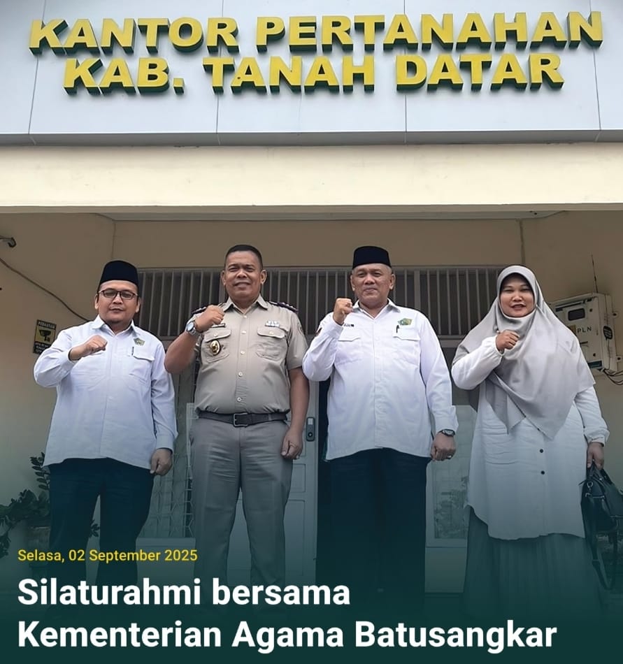 Batusangkar, Jurnal Minang. Kepala Kantor Pertanahan Kabupaten Tanah Datar, Ardinal Yullti, S.SiT., Selasa 2 September 2025 menerima kunjungan silaturahmi dari Kepala Kantor Kementerian Agama Kabupaten Tanah Datar, H. Amril, S.Ag., M.M.