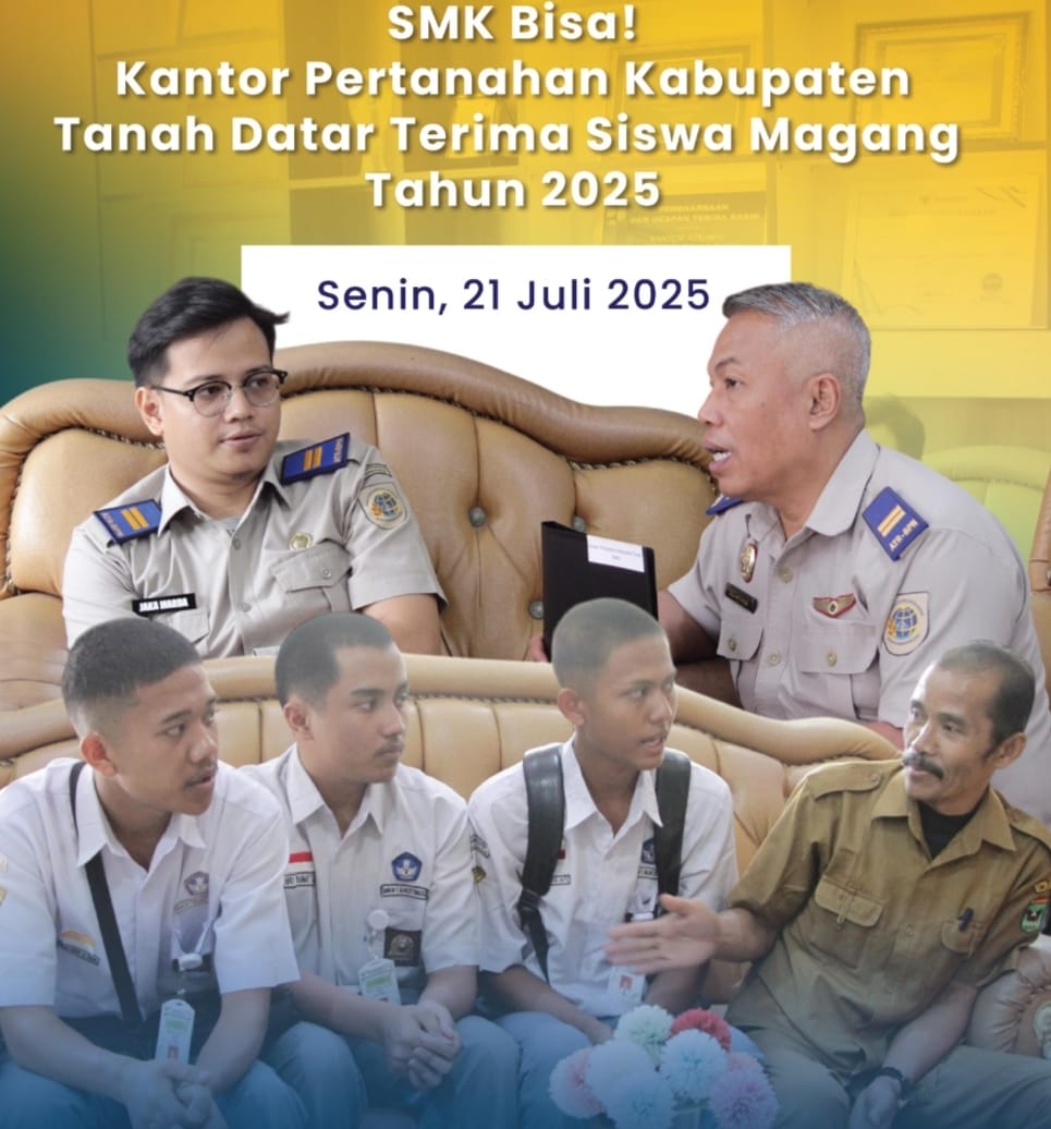Tanah Datar, Jurnal Minang. Dalam rangka mendukung peningkatan kompetensi vokasi dan pembelajaran berbasis dunia kerja, Kantor Pertanahan Kabupaten Tanah Datar menerima empat orang siswa magang dari SMK Negeri 1 Bukittinggi, jurusan Geomatika.