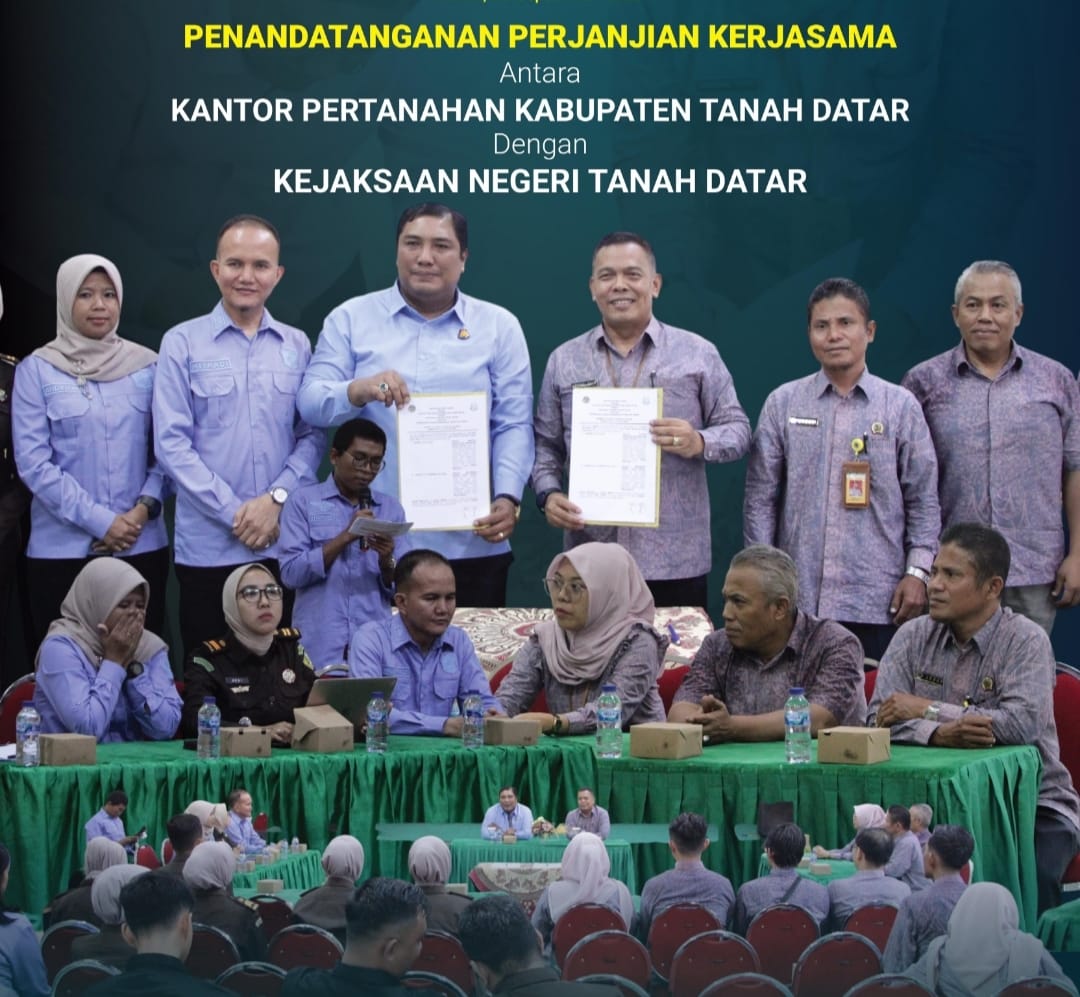 Tanah Datar, Jurnal Minang. Kantor Pertanahan Kabupaten Tanah Datar bersama Kejaksaan Negeri Tanah Datar pada Kamis 25 September 2025 resmi menjalin sinergi kelembagaan melalui penandatanganan Perjanjian Kerja Sama (PKS) di bidang Perdata dan Tata Usaha Negara. Kegiatan ini berlangsung di Aula Kejaksaan Negeri Tanah Datar pada Kamis (25/9).