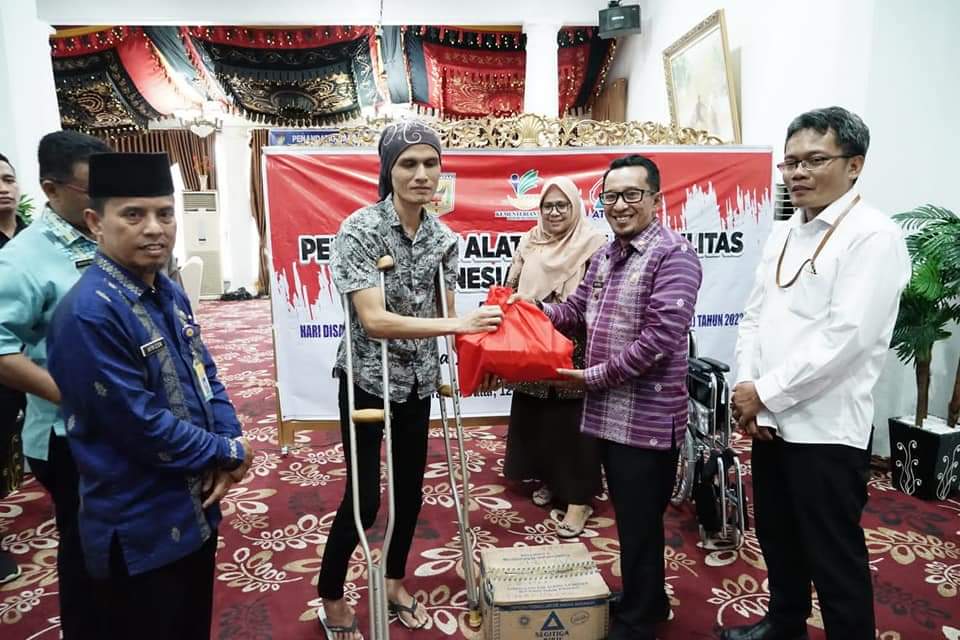 Batusangkar, Jurnal Minang.com. News&Web TV. Para penyandang disabilitas di Tanah Datar memperoleh berkah. Dalam rangka peringatan Hari Disabilitas Internasional (DHI) dan Hari Kesetiakawanan Sosial Nasional (HKSN) tahun 2022, Kementerian Sosial Republik Indonesia melalui Sentra Mulya Jaya Jakarta menyalurkan alat bantu disabilitas dengan program Indonesia Melangkah bagi 107 orang penyandang disabilitas di Kabupaten Tanah Datar dengan nilai total Rp.457.929.910, Kamis (15/12) di Gedung Indojolito Batusangkar.