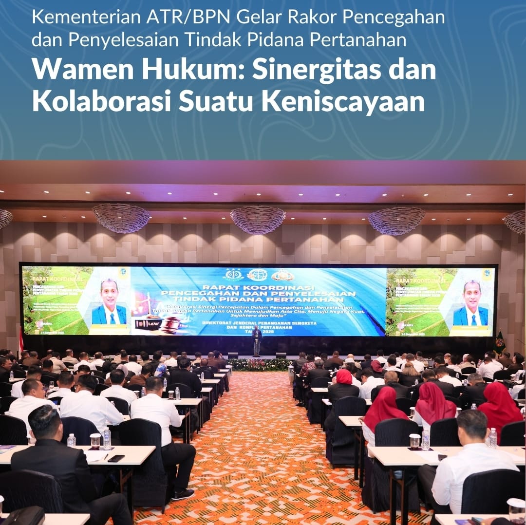 Rakor Pencegahan dan Penyelesaian Tindak Pidana Pertanahan Tahun 2025 yang dihadiri oleh seluruh pemangku kebijakan dalam tindak pidana di Kementerian ATR/BPN dan perwakilan aparat penegak hukum lainnya, diharapkan menjadi momentum untuk memperkuat sinergi dan menegakkan prinsip hukum yang adil dan tegas. (MW/PMHAL)