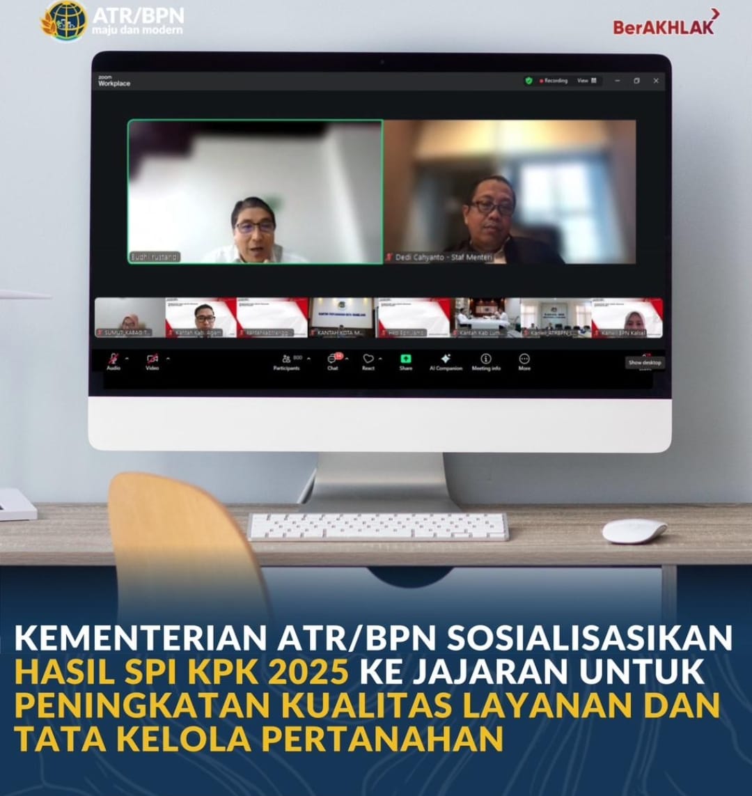 Kementerian ATR/BPN Sosialisasikan Hasil SPI KPK 2025 ke Jajaran untuk Peningkatan Kualitas Layanan dan Tata Kelola Pertanahan
