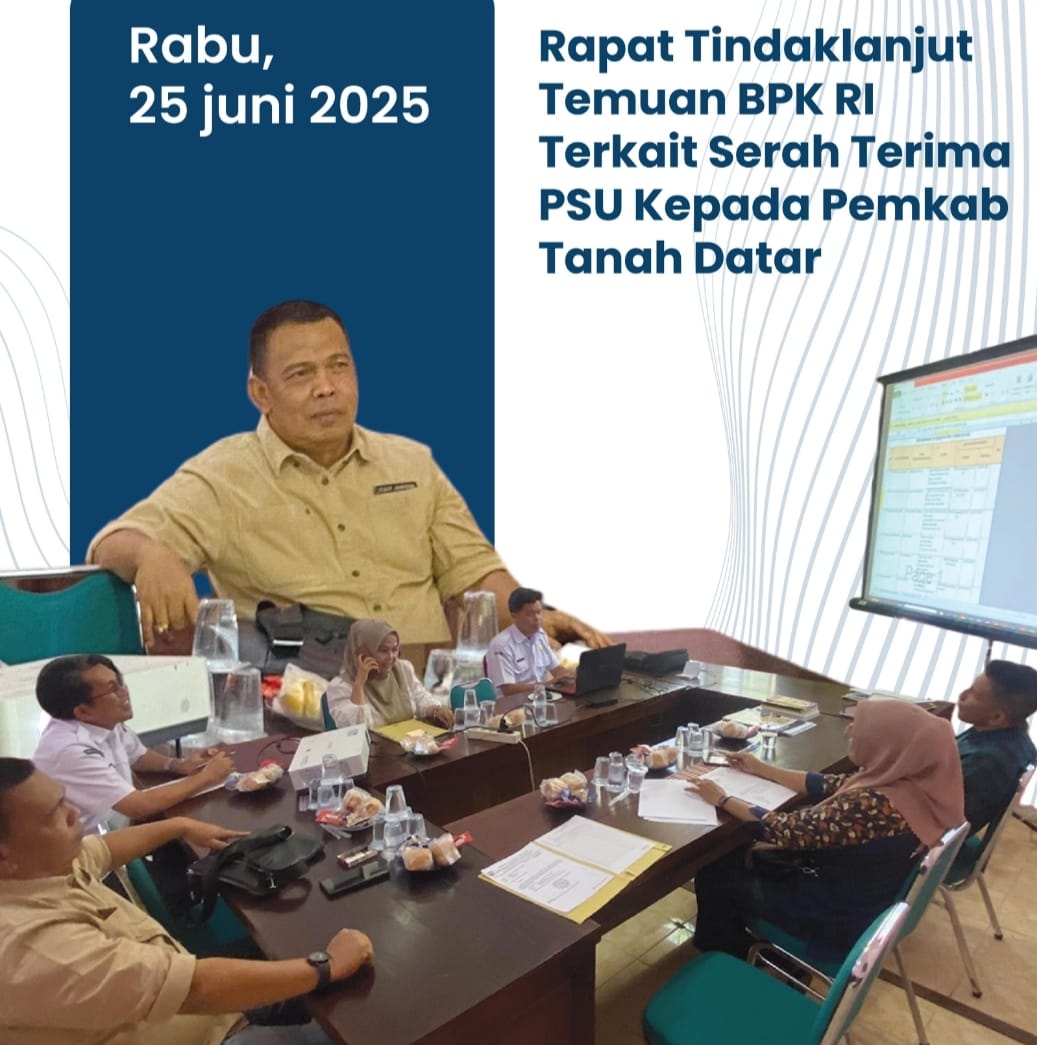 Tanah Datar, Jurnal Minang. Kepala Kantor Pertanahan Kabupaten Tanah Datar, Ardinal Yulti, S.SiT., menghadiri rapat koordinasi bersama Sekretariat Daerah Kabupaten Tanah Datar dalam rangka menindaklanjuti temuan Badan Pemeriksa Keuangan (BPK) Republik Indonesia terkait prasarana, sarana, dan utilitas umum (PSU) perumahan yang belum diserahterimakan kepada Pemerintah Kabupaten Tanah Datar.