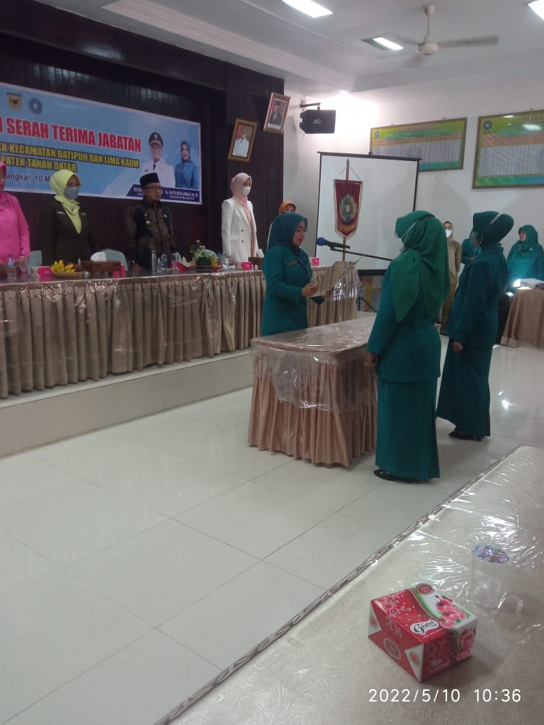 Hal tersebut disampaikan Ny Lise Eka Putra, SE pada Pelantikan dan serah terima jabatan ketua tim penggerak PKK Kecamatan Batipuh Ny. Nevi Khairunas dan Ny. El Irwan (Lima Kaum) Selasa, 10 Mei 2022 di gedung TP PKK Tanah Datar Batusangkar.