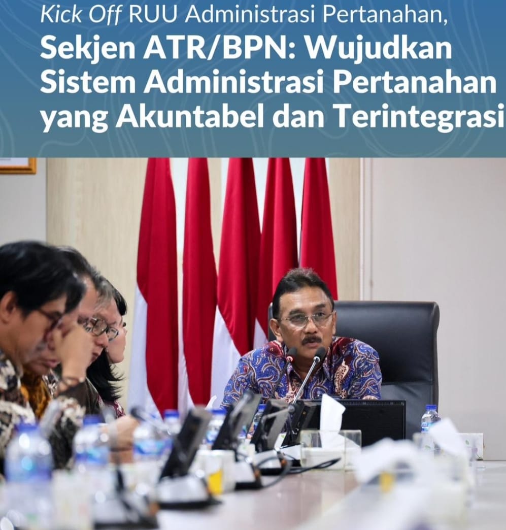 Lebih lanjut, Sekjen ATR/BPN menjelaskan bahwa persoalan pertanahan di Indonesia masih diwarnai oleh fragmentasi regulasi dan kelembagaan. Oleh karena itu, RUU Administrasi Pertanahan disusun sebagai penjabaran dari Undang-Undang Pokok Agraria (UUPA) Tahun 1960 sebagai lex generalis yang mampu menjawab perkembangan zaman dan kemajuan teknologi, sekaligus mengatasi tumpang tindih regulasi sektoral melalui penataan administrasi pertanahan yang lebih menyeluruh.