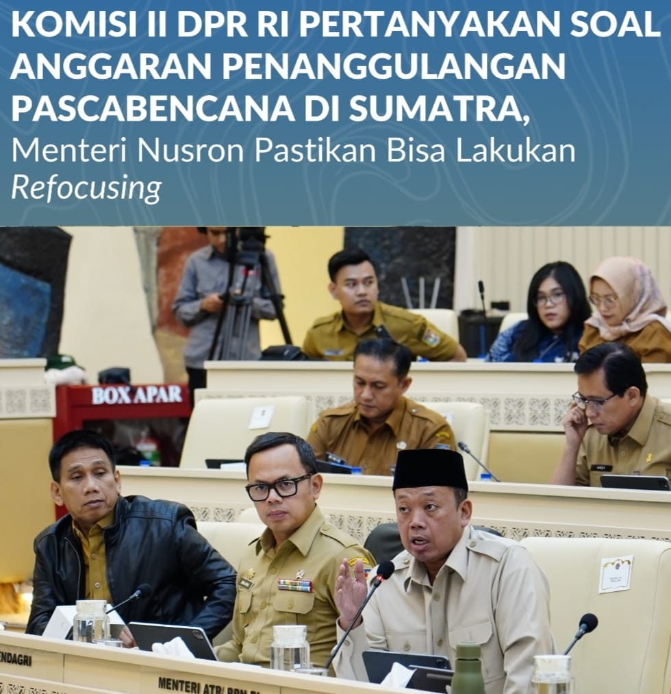 Jakarta, Jurnal Minang. Anggota Komisi II Dewan Perwakilan Rakyat Republik Indonesia (DPR RI), Mardani Ali Sera mempertanyakan kesiapan anggaran Kementerian Agraria dan Tata Ruang/Badan Pertanahan Nasional (ATR/BPN) dalam penanggulangan pascabencana di wilayah Sumatera Utara, Sumatera Barat, dan Aceh. Pertanyaan tersebut ia sampaikan dalam Rapat Kerja dan Rapat Dengar Pendapat (RDP) bersama para mitra kerja, termasuk Kementerian Agraria dan Tata Ruang/Badan Pertanahan Nasional (ATR/BPN) yang digelar di Gedung Nusantara DPR RI, Jakarta, Senin (19/01/2026).