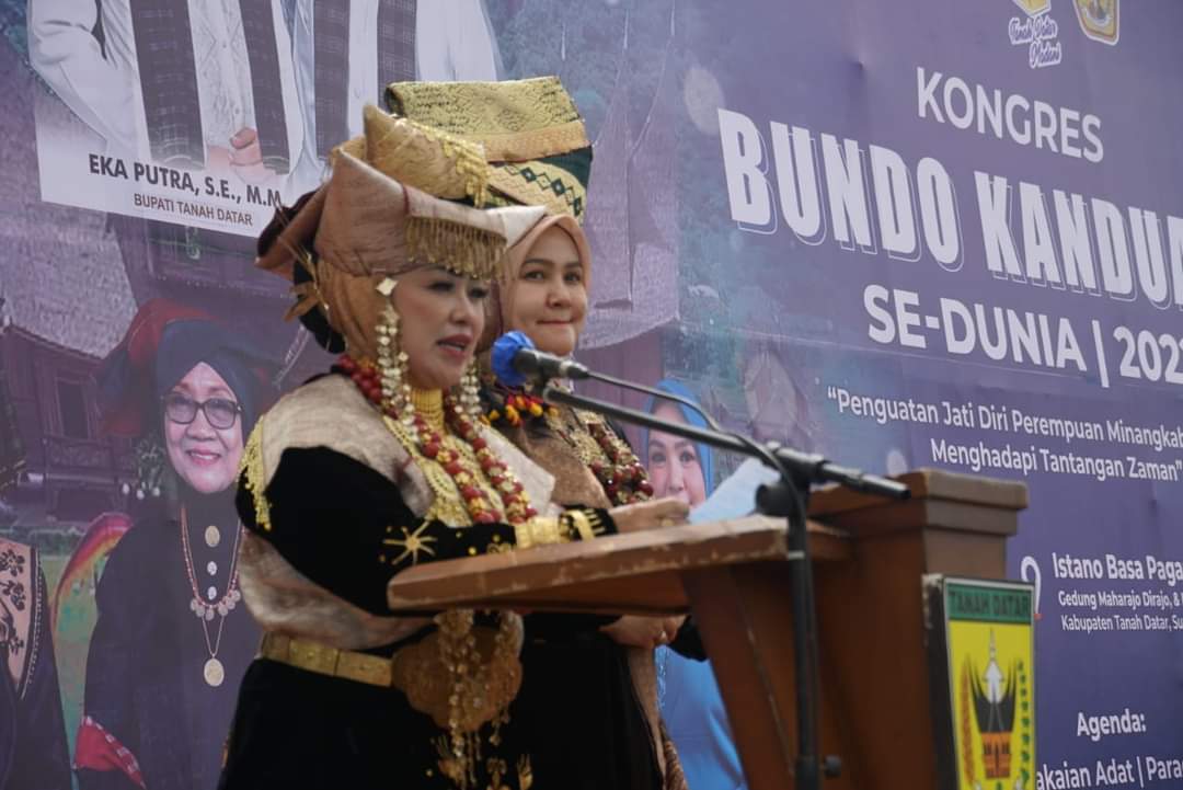 Ketua Perkumpulan Bundo Kanduang Raudha Thaib menyampaikan apresiasi dan terima kasih kepada Pemerintah Tanah Datar yang melaksanakan kegiatan Kongres Bundo Kanduang.