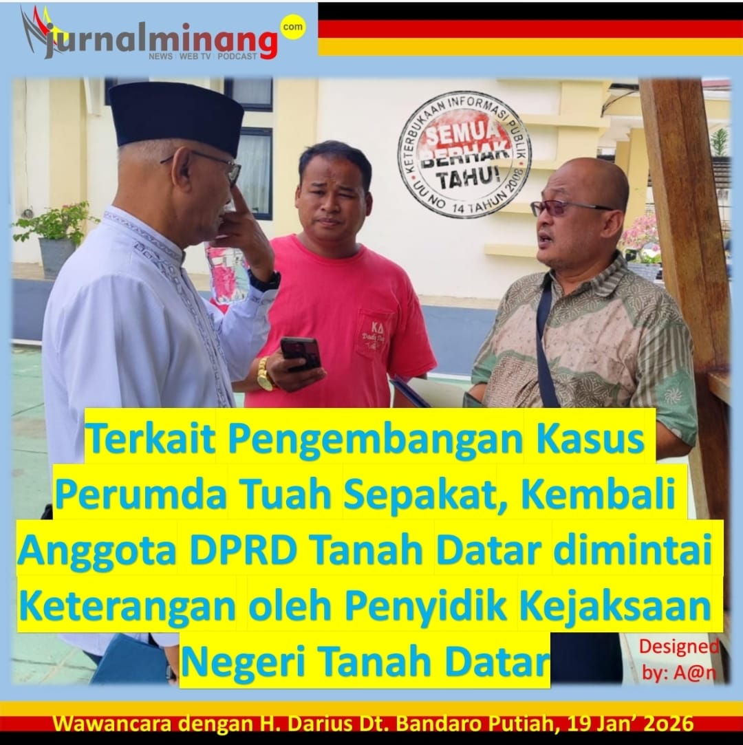 Setelah pemanggilan dan pengambilan keterangan terhadap 5 (lima) orang anggota DPRD aktif periode 2024-2029 pada hari Rabu, 14 Januari 2026 lalu, maka pada hari Senin, 19 Januari 2026 terlihat giliran 1 (satu) orang anggota DPRD Tanah Datar aktif H. Darius, Akt, Dt. Bandaro Putiah dari Partai Demokrat menghadap untuk dimintai keterangan oleh Penyidik Kejari Tanah Datar bertempat di kantor Kejari Tanah Datar di Pagaruyung.