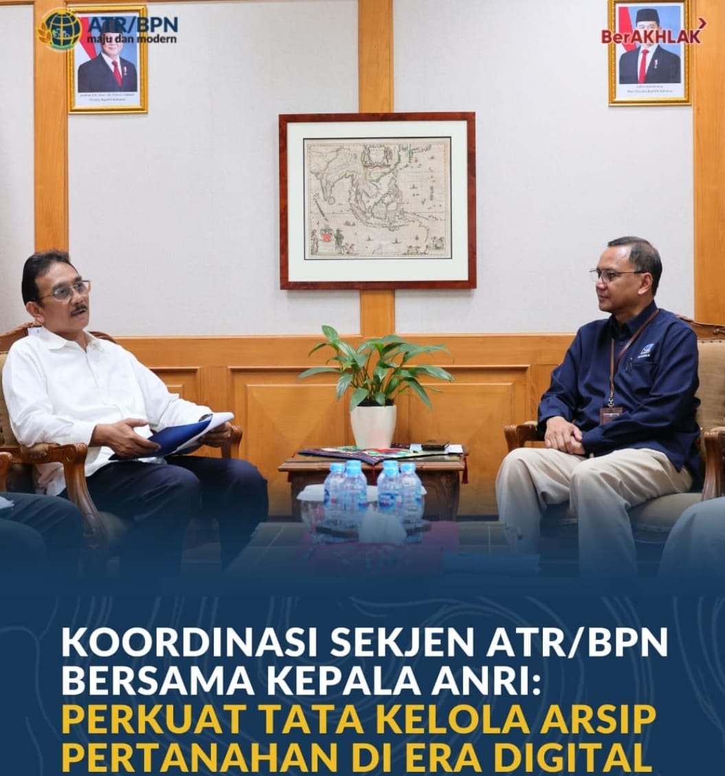 Jakarta, Jurnal Minang. Sekretaris Jenderal Kementerian Agraria dan Tata Ruang/Badan Pertanahan Nasional (ATR/BPN), Dalu Agung Darmawan, mengunjungi Kantor Arsip Nasional Republik Indonesia (ANRI) di Jakarta pada Rabu (25/02/2026). Kunjungan dilakukan untuk berkoordinasi dalam rangka penguatan tata kelola arsip pertanahan di era digital.
