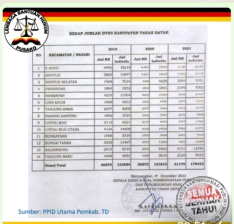 Di penghujung tahun 2022 penulis mendapat kado dari PPID Utama Pemerintah Kabupaten Tanah Datar berupa Jawaban Permohonan Informasi yang berisi data yang penulis butuhkan untuk bahan kajian dan publikasi perihal Data Terpadu Kesejahteraan Sosial (DTKS) dan Jaminan Kesehatan Masyarakat Daerah (Jamkesda).