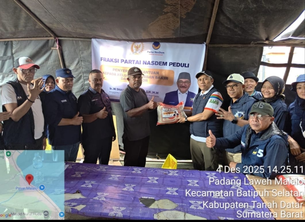 Dalam pendistribusian bantuan dari M.Shadiq Pasadigoe sebelumnya, Sekretaris DPD Partai Nasdem Adri Jinil Simabura, SH, MH minta kepada ketua DPC Partai Nasdem Batipuh Selatan Toni Erawaldi agar mendata siapa siapa yang akan dibantu Partai Nasdem pimpinan Surya Paloh yang terdampak banjir bandang atau galodo. Bantuan tersebut akan diserahkan pada Kamis 4/12-2025 di Malalo.