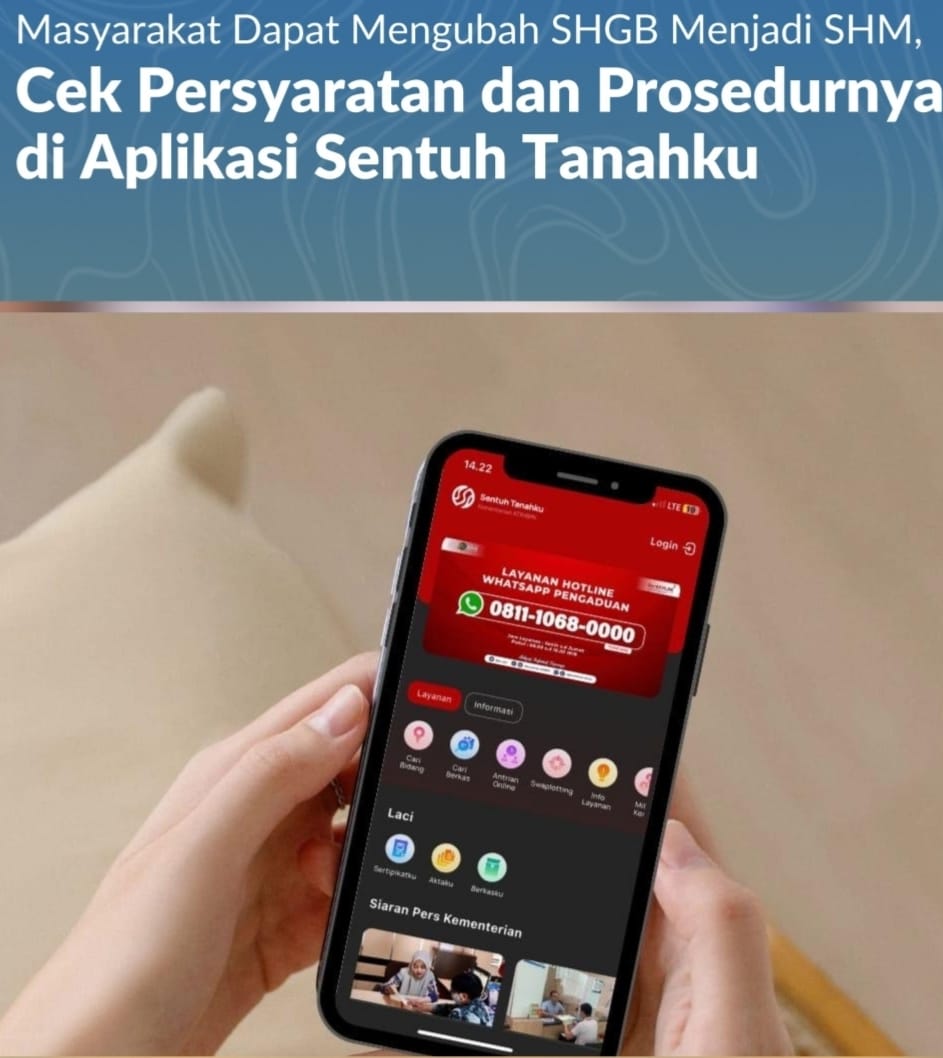 Kepala Biro Humas dan Protokol Kementerian ATR/BPN, Harison Mocodompis, menyampaikan bahwa masyarakat dapat mengakses informasi mengenai perubahan hak dari SHGB menjadi SHM melalui aplikasi Sentuh Tanahku.
