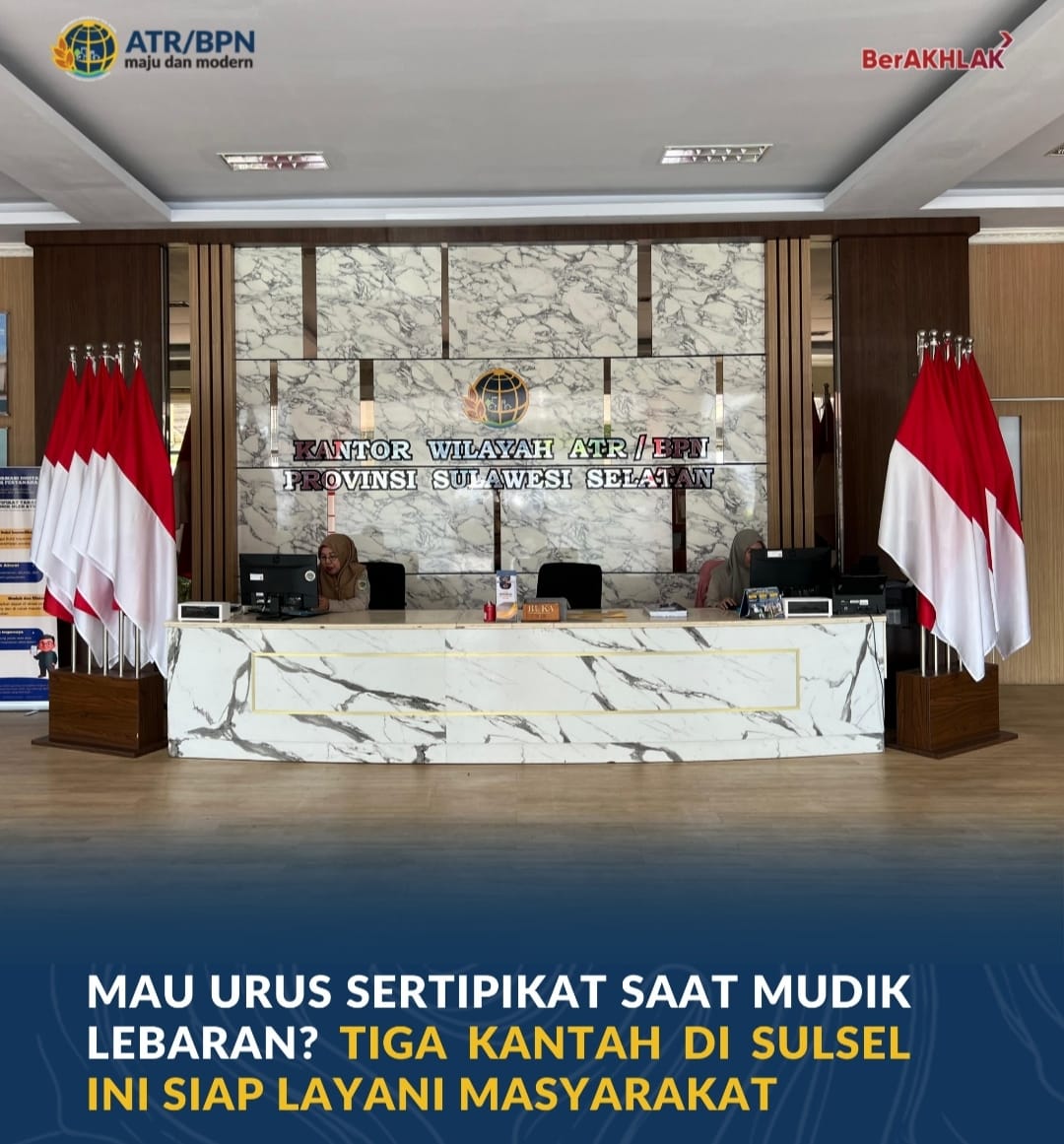 “Selama periode libur Lebaran, tiga Kantah, yaitu di Kota Makassar, Kabupaten Gowa, dan Kabupaten Bone tetap dibuka secara terbatas. Layanan yang tersedia meliputi layanan informasi pertanahan, pengambilan produk seperti sertipikat, serta penerimaan pengaduan,” ujar Kepala Bagian Tata Usaha Kantor Wilayah BPN Provinsi Sulawesi Selatan, Irvan Thamrin, dalam keterangannya pada Rabu (18/03/2026).